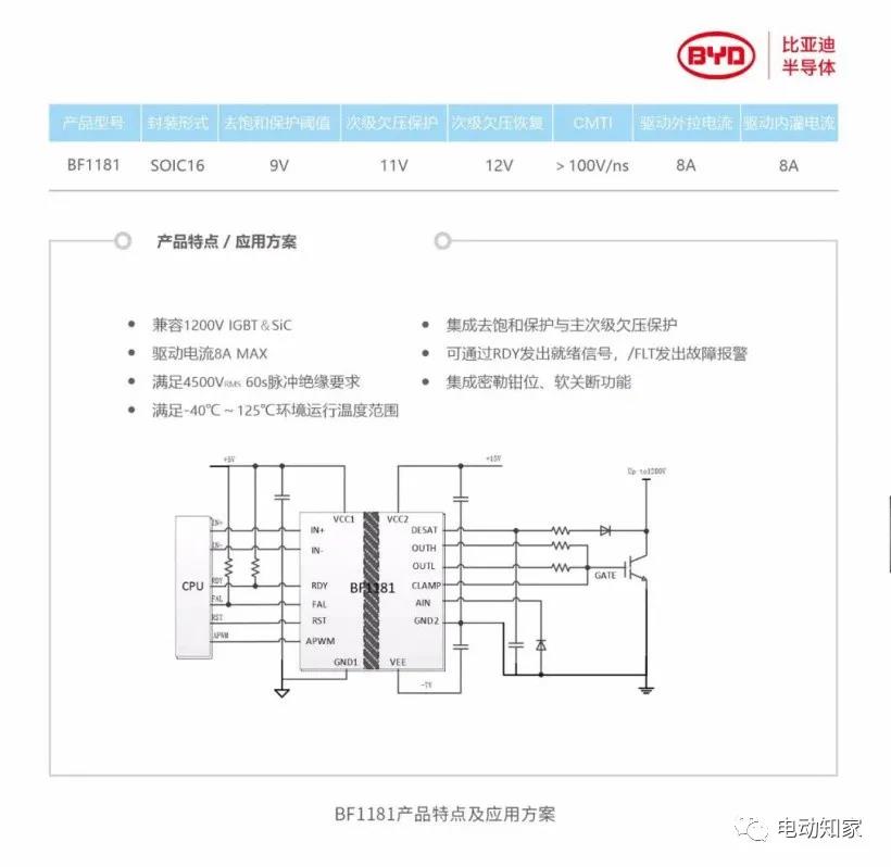 來自電動知家消息,12月14日,比亞迪半導體在先前研發(fā)成果的基礎上,成功自主研制并量產1200V功率器件驅動芯片BF1181,今年12月大規(guī)模生產并向各大廠商供貨。