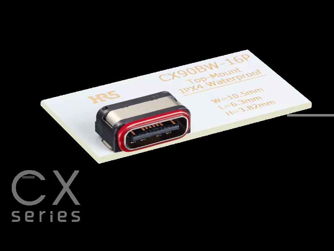 1廣瀨電機(jī)為Type-C連接器CX系列開發(fā)出了一種新插座,本次發(fā)布的是支持IPX4防水的板上式16芯 “CX90BW-16P”。