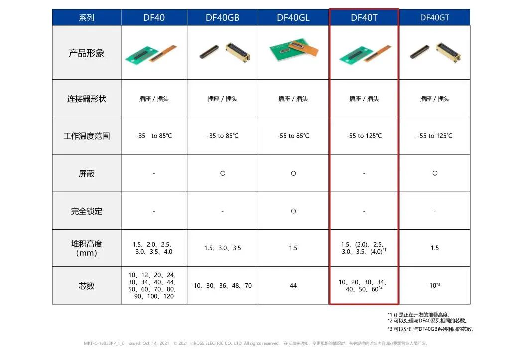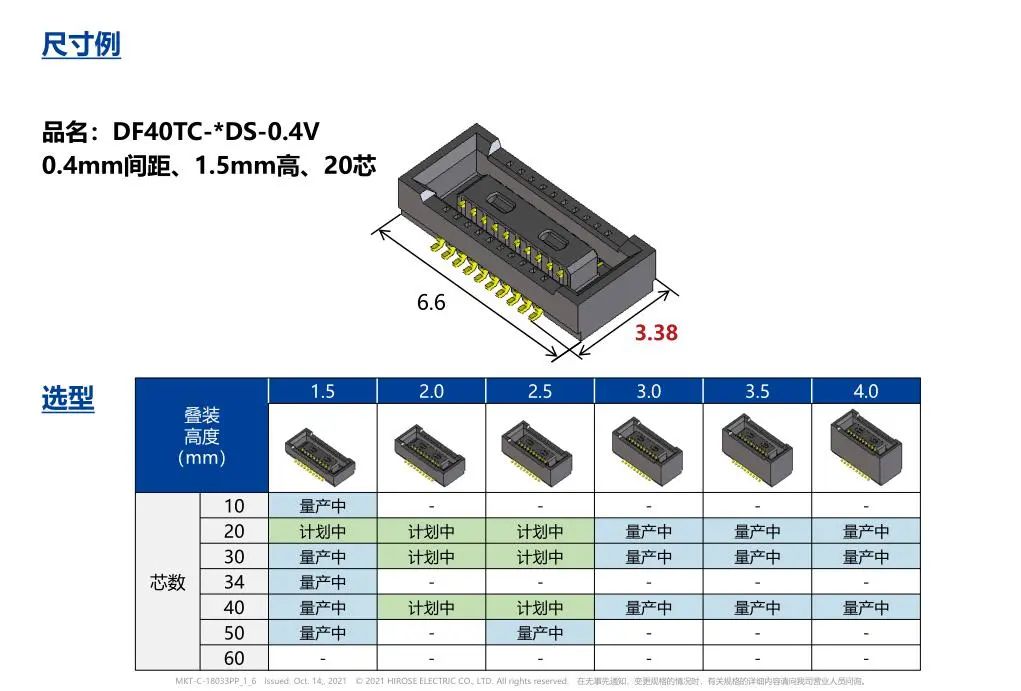 01 DF40系列 選型? 02 尺寸&選型 ? 03 車(chē)載應(yīng)用使用事例 ? 04 連接示意圖 ? 05 支持PCI Express 4.0 (16Gbps) 傳輸 ? 06 檢查用連接器 ? 07 推薦基板圖案 ? 08 規(guī)格 ? 如果應(yīng)用需要高度可靠性,例如汽車(chē),請(qǐng)聯(lián)系公司代表以獲取更多信息。